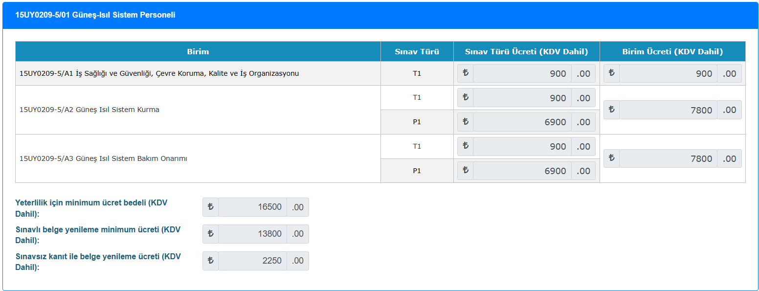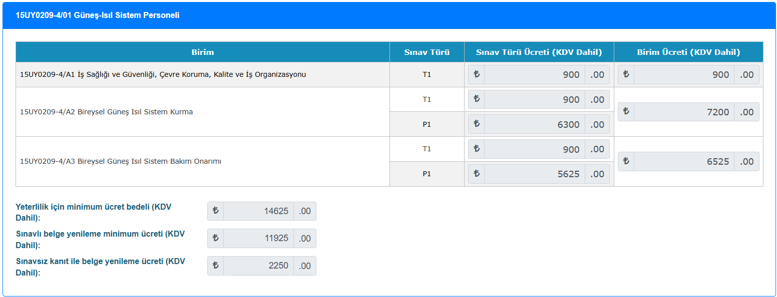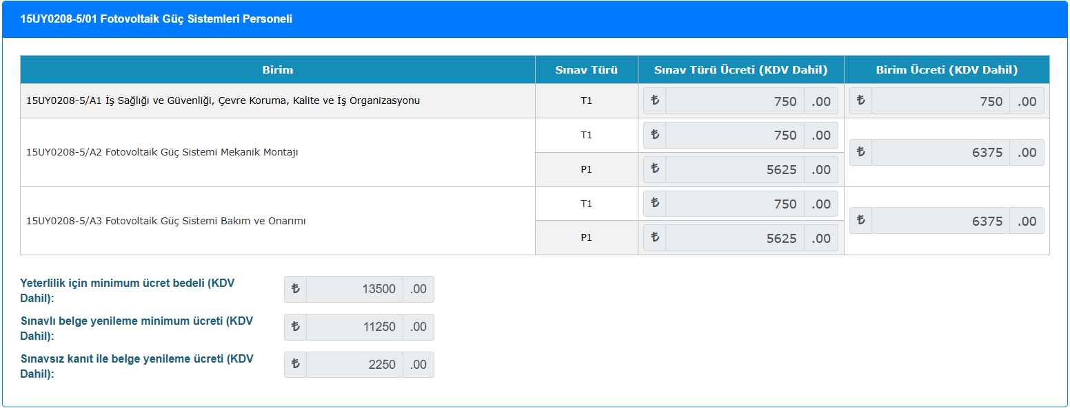 - Yeterlilik yerine yeterlilik birimlerine başvuru yapıldığında, her yeterlilik biriminin birim ücreti talep edilir.